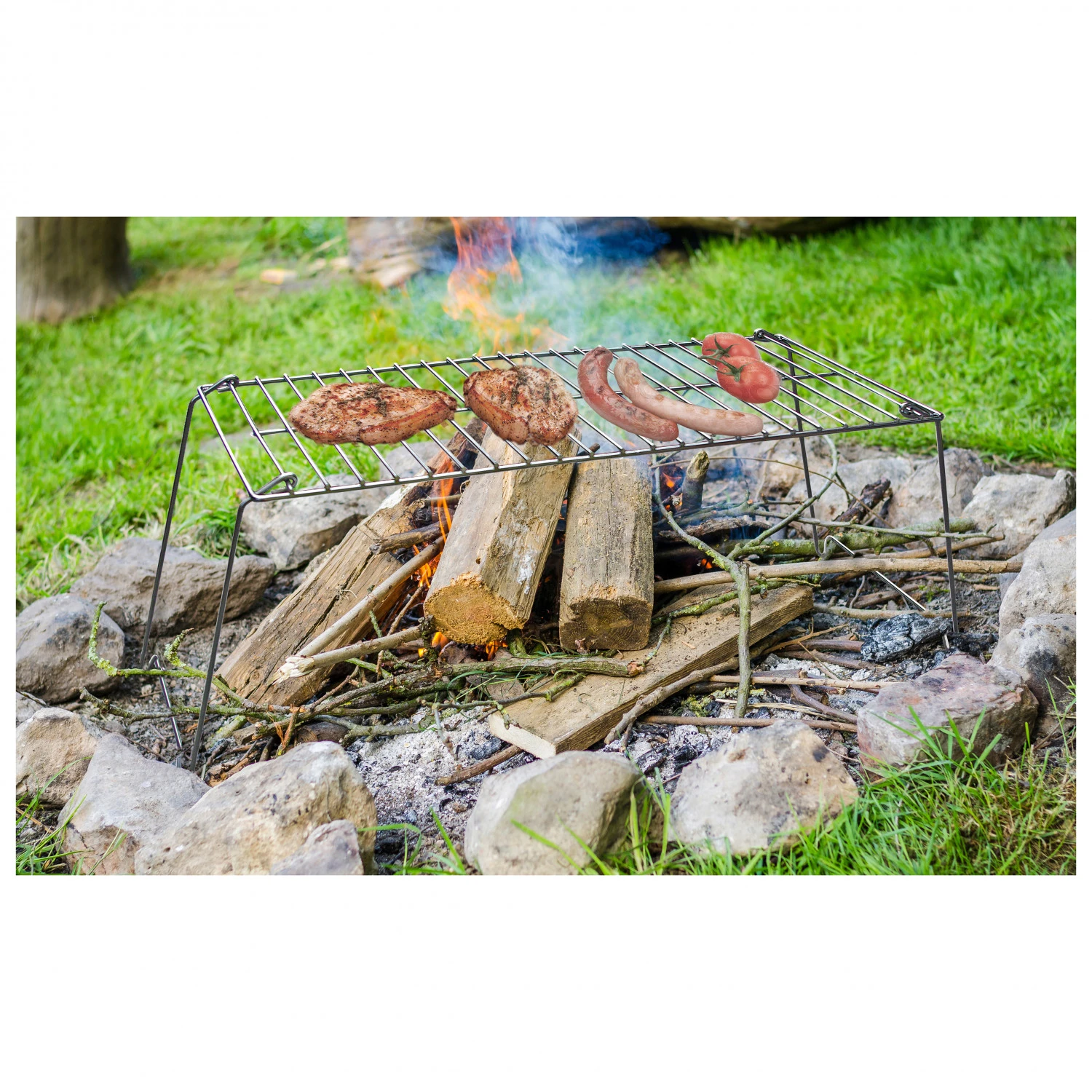 Avec cette grille, vous n’aurez plus à vous contenter de faire griller des saucisses au bout d’un bâton pendant un feu de camp. Vous pourrez également préparer des steaks, du fromage grillé, etc.