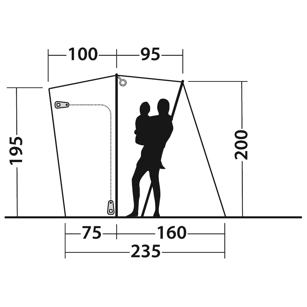 Avec son matériau Outtex 3000, la tente est imperméable de manière fiable. Le sol avec son double revêtement protège de l’humidité venant du bas. Grâce aux moustiquaires, les insectes gênants restent à l’extérieur. Des rideaux imperméables couvrent les fenêtres en mesh pour les obscurcir et les protéger de la pluie. Ça permet également de renforcer l’intimité. La grande entrée veille à un accès libre à l’auvent et offre une vue imprenable sur la nature. Le toit protège tout aussi bien de la pluie que du soleil. Grâce au matériau ignifuge, on peut cuisiner tranquillement dans l’auvent. Des passe-câbles et des options de fixation pour des lampes complètent le tout.